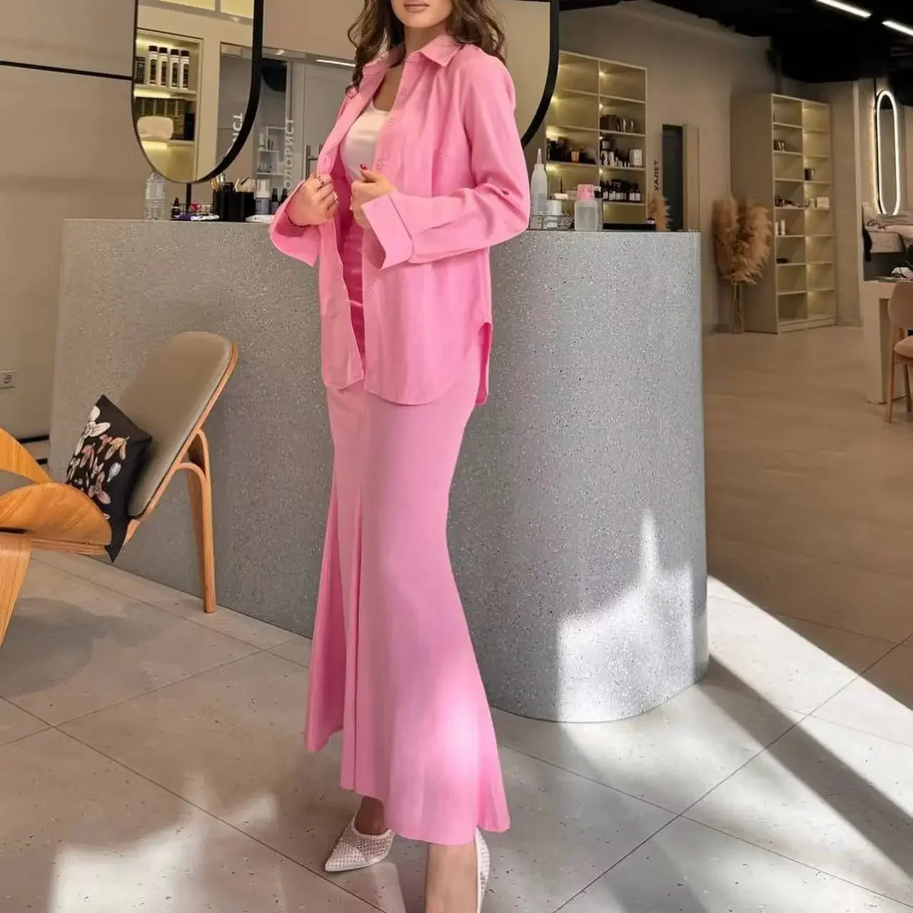 Femmes musulmanes jupe ensembles Blouse 2 pièces costume dessus de chemise jupes longues simple boutonnage marocain dubaï Ensemble arabe tenues décontractées